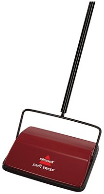 Manufacturer No. – 22012 UPC – 011120002164Collection Type: Bagless Product Type: Sweeper Color: Red Pet: Yes Warranty: 1 Auto Cord Rewind: No Accessories: Rubber Bumper Corded or Cordless: Cordless Assembled Height: 13-1/4 in. Assembled Width: 4 in. Surface Type: Bare Floor Assembled Depth: 12 in. Adjustable Height: Self-Adjusting Lightweight: Yes Self-Propelled: No Edge Cleaning: No Motorized Brush Roll: YesAn ideal tool for dry pickups and quick cleaning, the Bissell Swift Sweep carpet sweeper is quiet, motorless, and multifunctional. Use it on bare floors or carpets to sweep up dirt and crumbs, and slide it under furniture to trap lint and dust bunnies. The sweeper’s dual-direction brush roll snags debris off the floor in both forward and reverse, so coverage is highly efficient. The twin dustpans empty easily with a simple push from underneath, and a clip-on comb helps keep the brush roll clean. Made of durable steel with a thick rubber bumper, the sweeper is long lasting and kind to floors and furniture. The construction is straightforward, easy to use, and lightweight in action. Standing 43-1/4 inches high, the sweeper measures 10-1/2 by 9-1/2 inches at the base and carries a one-year warranty. Bissell 2201-2 swift Sweep – a cordless Sweeper from Bissell who has been making quality Sweepers since 1876