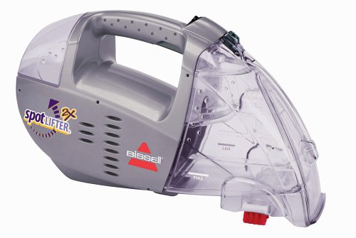 Cordless, handheld cleaner lifts spots, stains and dirt in one easy step Cordless – up to 15 minute run timeStationary cleaning brushSpray, suction cleans and dries in one step12 oz dirty tank capacity Everyone has their own system when it comes to mopping up a spilled mug of hot chocolate on the impractical, but beautiful ecru carpeting. Maybe they begin by dispensing half a roll of paper towels to absorb the excess liquid, then apply the carpet cleaner of choice, dab ferociously, and so on. Problem solved perhaps, but often the manual scrubbing actually pushes filth deeper into the carpet, further embedding it. Even if the chocolate color has been eradicated, the unpleasant aroma of spoiled milk may still arise. To fully eliminate stains, Bissell created their clever SpotLifter 2X carpet cleaner. The 9.6v cleaner uses a combination of aggressive brush agitation and powerful suction to actually lift spots up and out of the carpet. Ideal for attacking fresh spills or unsightly pet accidents, the handheld vacuum leaves the carpet looking as if Coco never left her owners a stinky present there.