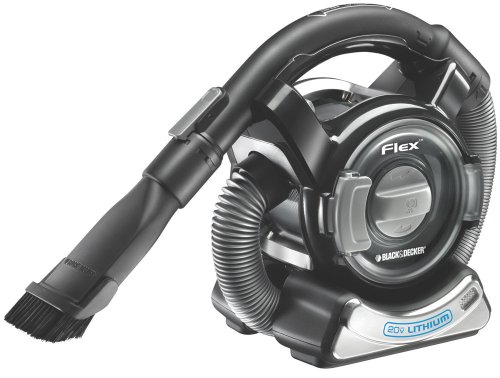 The Black & Decker BDH2000FL 20-Volt Max Lithium Ion Flex Vac Boasts Long Life Lithium Ion Technology That Is Compact, and Lightweight. The versatile BDH2000FL FLEX vacuum maintains strong suction 2X longer than the Black & Decker Ni-Cd** unit and features an innovative four-foot flexible hose that allows users to access hard to reach areas and tight spots. The hose wraps around the unit for neat storage and portability. The vacuum also includes a charging base with charge indication and tool storage. Accessories included are a pet hair tool, crevice tool, and a 2-in-1 brush tool. Long lasting suction is ensured by its electronics, three layers of filtration, cyclonic action, and a filter cleaning tool. Additionally, the filter is dishwasher safe and the bowl can be emptied with the simple touch of a button.