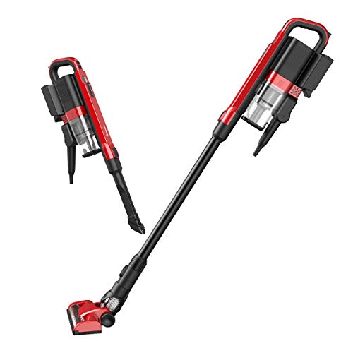 Cordless Vacuum Cleaner, Sancusto 2-in-1 Flat Nozzle Brush Rechargeable Vacuum Cleaner, Lightweight Upright Vacuum, Handheld Stick Floor Sweeper Vacuum for Floor Carpet Pet Hair, Lava Red