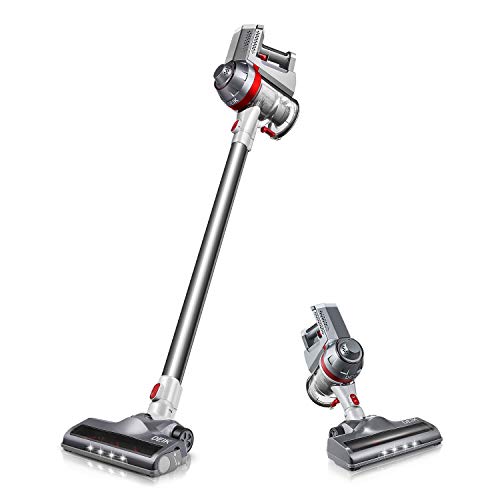 Deik Cordless Vacuum Cleaner, 2 in 1 Stick and Handheld Vacuum, 2019 Upgrade Version with Powerful Suction & LED Brush for Home and Car Cleaning – Silver