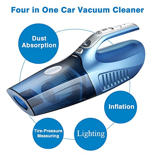 Specifications: ● N.W/G.W: 1.3/1.5KG ● Product Dimensions(L*W*H): 408*108*145mm (Approx) ● Input Current:10A-15A ● Input Voltage: DC12V ● Power: 100W ● Inflatable Power: 100W (gauge measures to 150 PSI) ● Power Cord Length:4.5m(14.76ft) Dust-Absorption Guide: 1. Insert cigarette lighter into the DC 12V cigarette lighter socket and switch the car on 2. Push the switch button forward to absorb trash.(middle to power off) 3. Use correspondent suction nozzle accessories according to different occasions 4. Any places of the car can be reached with the 4.5m power cord 5. Better to keep the suction nozzle face and absorbed face at the parallel level Pressure Measuring Guide: Insert rubber nozzle to the pneumatic interface and tire valve, then pull both switch knobs down to measure the tire pressure LED Lighting Guide: Insert cigarette lighter into the DC 12V cigarette lighter socket in the car, start the car. Then press the LED switch, light up. Switch it off while not using Package Includes: ● 1 x Infitary® Car Vacuum ● 1 x Flat Crevice Nozzle ● 1 x Lengthen Flexible Hose ● 1 x Cigarette Lighter Spare Fuse ● 1 x Inflator Hose ● 1 x Dust Brush ● 3 x Valve Accessories ● 1 x English User Manual