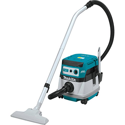 Clean-ups just got easier with the Makita 18V X2 LXT Lithium-Ion (36V) cordless 2.1 gallon wet/dry dust extractor/vacuum. The XCV06Z (tool only) is powered by two 18V LXT batteries for 36V power and run-time, without leaving the 18V LXT battery platform. It’s powered by an efficient Brushless motor for longer run time, increased power and speed, and longer service life. Using two 18V 5.0Ah batteries (sold separately), the XCV06Z delivers up to 75 minutes of continuous run time on low setting and 40 minutes on high setting, with 74 CFM and 39” water lift of suction. It includes an Anti-Static hose (1-1/2″ x 8′) for extended reach and fast clean-ups, with an efficient cloth filter to captures small dust particulates. For ease-of-use, the XCV06Z has an oversize on-off switch, variable speed control dial, and dual L.E.D. Battery indicators that are clearly visible and easily accessible on the top and front of the vacuum. Additional features include quick-release metal latches, large rubber bumper, and rear casters with locking levers. It’s part of Makita’s expanding 18V Lithium-Ion system, the world’s largest cordless tool system powered by 18V Lithium-Ion slide-style batteries. Makita 18V Lithium-Ion batteries have the fastest charge times in their categories, so they spend more time working and less time sitting on the charger. For improved tool performance and extended battery life, Makita created Star protection Computer controls. Star protection is communication technology that allows the Star Protection-equipped tool and battery to exchange data in real time and monitor conditions during use to protect against overloading, over-discharging and overheating. For increased versatility, the tool can also be powered by Makita 18V LXT and compact Lithium-Ion batteries with the Star symbol on the battery indicating Star protection inside.