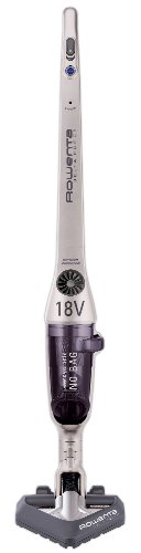 The rowenta delta force 18-volt bag less cordless stick vacuum cleaner is designed with the highest quality and standards that rowenta is known for worldwide. the lightweight delta force 18v vacuum cleaner comes with cordless convenience, a jack-plug charger and can be stored in self-standing upright position with no cumbersome charging base. easy, sophisticated and modern, this lightweight stick vacuum cleaner will easily integrate into any home. with running times of up to 40 minutes and the patented delta force cyclonic technology, this lightweight 18-volt cordless bag less stick vacuum cleaner has superior and easy performance on both hard and carpeted surfaces. the delta force cyclonic system accelerates vacuumed air through 3 filtration systems high speed air flow to create an initial separation between dust and air, a separator grid for smaller particles of dust and a long-life washable foam filter to stop even the smallest particles. the bag less 33-ounce dust container is easy.