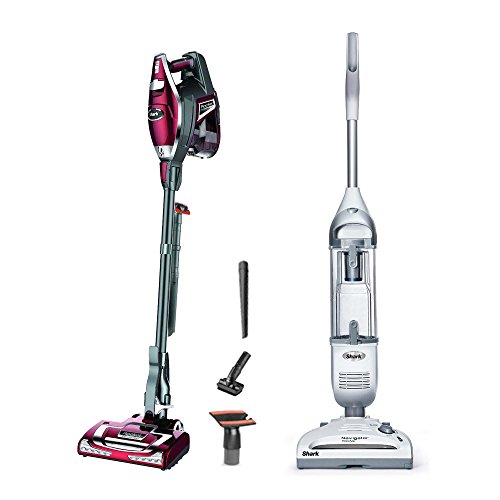 The certified refurbished Shark Rocket Deluxe Pro Ultra-Light Upright Vacuum thoroughly cleans bare floors and deep-cleans carpets. Weighing about 8 pounds, this lightweight vacuum has advanced swivel steering, a removable dust cup, and twice the capacity of the original Rocket vacuum. It’s extremely maneuverable and provides amazing cleaning performance. Not only is this vacuum great on floors, it converts to a handheld, making stairs, furniture, and other above-floor surfaces easy to clean. Its slim design and handy wand are also perfect for reaching up to high, narrow spaces and under furniture using the quick-release foot pedal to separate the floor nozzle. The bright LED lights on the nozzle and handheld vacuum illuminate your work area so you can easily spot hidden debris. This package also includes the certified refurbished Shark Navigator Freestyle Cordless Stick Vacuum, a lightweight, bagless, easy-to-maneuver vacuum that cleans your home with ease. The Navigator uses a powerful motorized brush, strong suction power, and 2 speed settings to remove dirt, pet hair, and other debris from your carpets and hard floors. Its swivel steering and light weight make it easy to maneuver. When you’re done cleaning, simply dump the dirt cup into your trash can – no need to replace a bag.